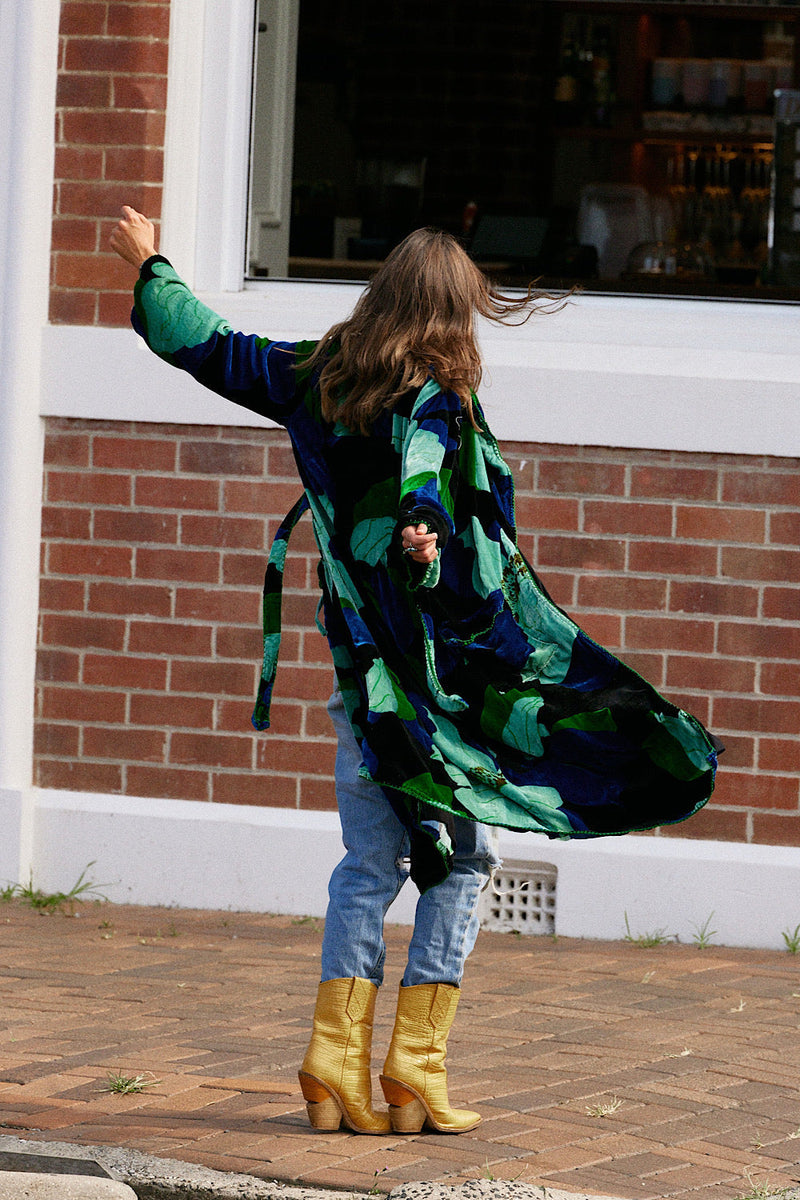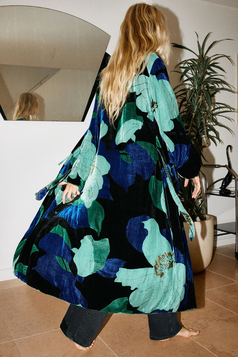 Roadhouse Blues Velvet Housecoat - Aqua Bold Floral - Chasing Unicorns