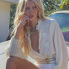 Rocks Off Linen + Organza Blouse With Floral Appliqués